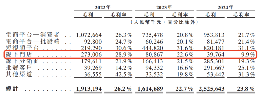 据招股书,三只松鼠线下门店毛利率也从2022年的28.9%骤降至9.9%。