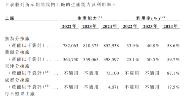 更为重要的是,不论是新品牌的孵化、还是产能扩建以及全渠道发力,均需要时间和资金的持续投入。产能扩建方面,招股书披露,公司计划在2025mdash;2026年推进产能扩建,其中针对坚果类产品的投资预计为2.5亿元,针对零食等其他类别的投资预计为2.2亿元。