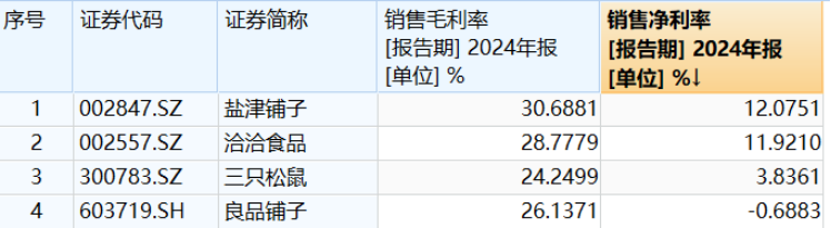 净利率的差别则更加明显。2019年至今,三只松鼠每年的净利率始终没有突破5%,反观盐津铺子和洽洽食品,其近三年净利率虽有波动,但均超过10%。