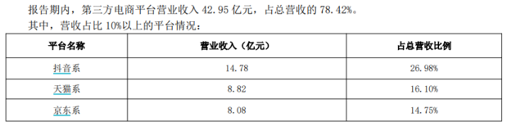 2022年底提出“高端性价比”战略后,三只松鼠开始依托“D+N”全渠道发展体系,其中公司将短视频电商看作是“品类发动机”。2025年上半年,三只松鼠来自第三方电商平台的收入同比增长约5.01%,其中抖音系的收入为14.78亿元,营收占比攀升至26.98%,同比增幅达到20.75%,但较上年同期180.73%的增幅已呈现明显放缓,而来自天猫系和京东系的收入分别较上年同期下降18.56%以及微增1.89%,公司传统电商渠道的盈利能力承压明显。