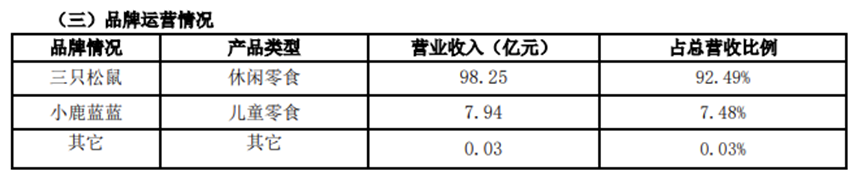 与研发“躺平”形成鲜明对比的是,三只松鼠近年在跨界推新上动作频频,先后推出小鹿蓝蓝、铁功基、养了个毛孩、喜小雀等多个子品牌,其中婴童休闲零食品牌小鹿蓝蓝是重点孵化对象,2024年贡献收入7.94亿元,占总营收的7.48%。但遗憾的是,即便面向对安全要求更高的婴童市场,小鹿蓝蓝仍采用代工模式,这也让品牌屡遭质疑。
