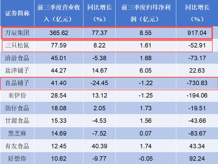 万辰集团 也今年前三季度的业绩增长利润同比达917.04%。