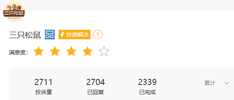 在快速扩张过程中,三只松鼠也面临着产品质量与用户体验方面的挑战。截至2026年1月19日,黑猫投诉平台相关投诉累计达2711条,其中涉及产品发霉、异物等质量问题占相当比例。