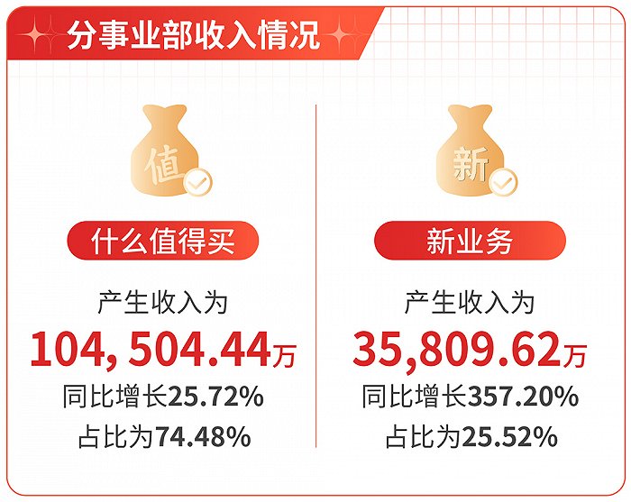 反应在业绩上就是新业务收入的大幅提升。2021年新业务则实现收入3.58亿元,同比增长357.20%,占比从2020年的8.61%大幅提升至25.52%。占比的大幅提升足以说明,值得买科技“以消费内容为核心”的多元化战略转型,已经初见成效。