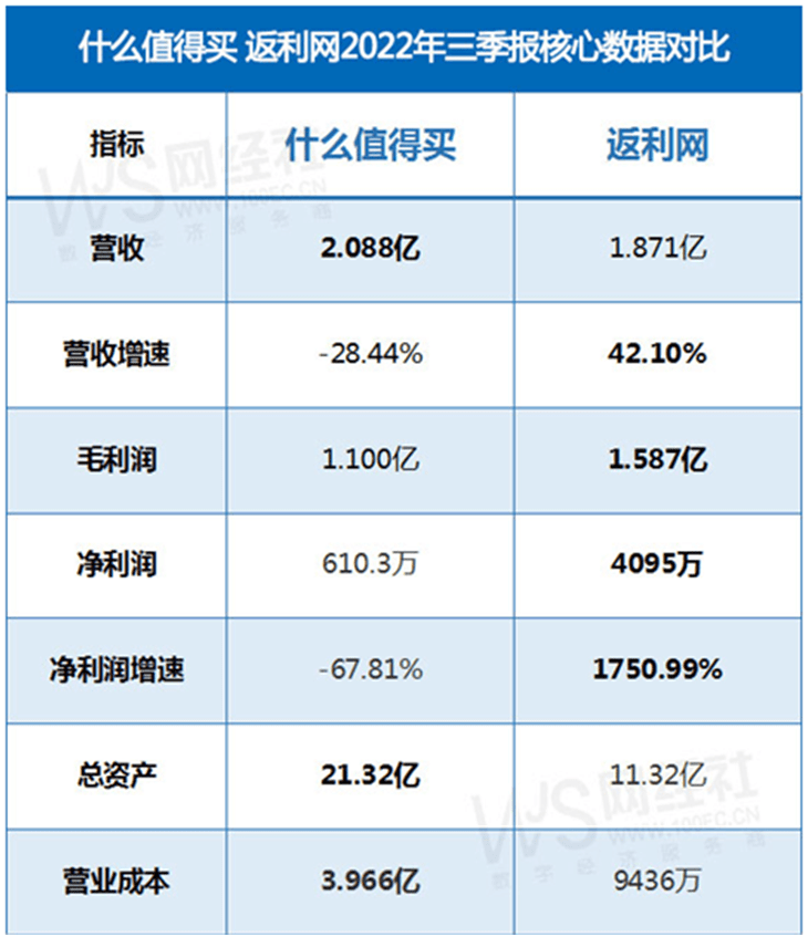 从两家导购电商的财报数据来看,营收增速和净利润增速均为一正一负,且都为返利网呈现正向增长。
