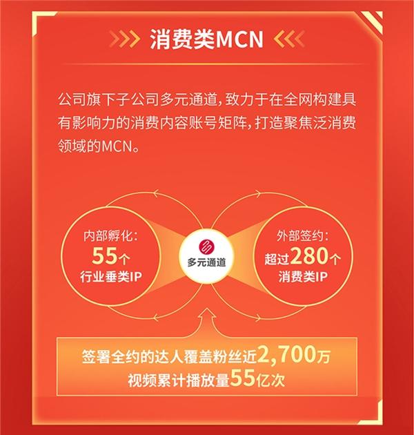 其中,通过子公司“多元通道”开展的“消费类MCN”业务,依托抖音、快手、Bilibili、小红书等站外流量体系孵化和运营的账号已形成一定规模的IP矩阵,截至2022年底,已签约KOL近250个,覆盖超4亿粉丝。目前,多元通道已取得抖音、B站、小红书、快手、视频号等全平台的官方认证MCN资质,并在2022年通过直播、短视频等方式,为200个品牌提供信息推广和品牌营销服务。