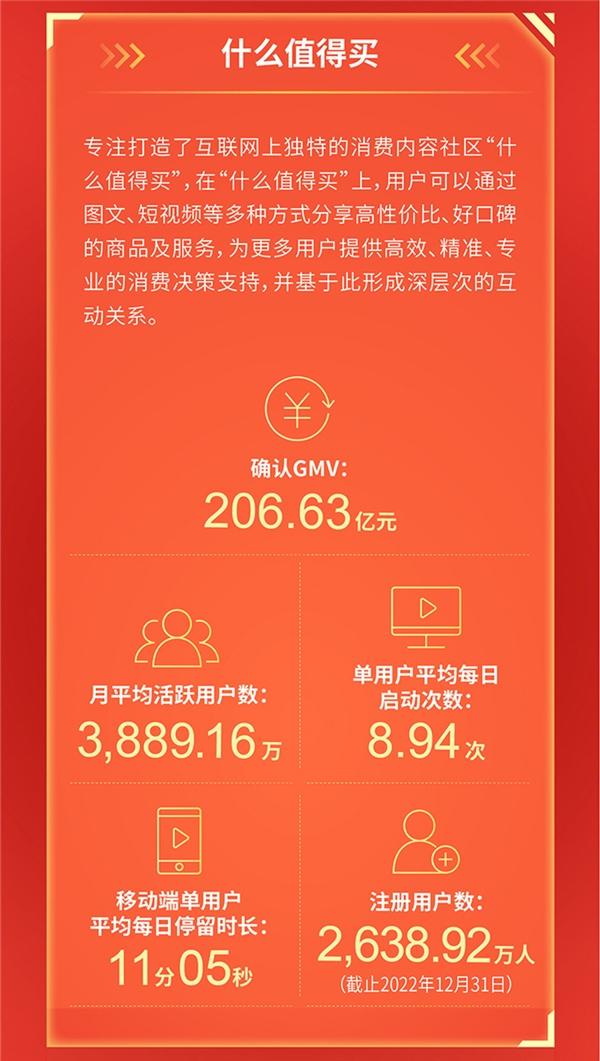 2022年,“什么值得买”及相应的移动应用完成订单约1.8亿单,为电商平台和品牌商带去的GMV达到206.63亿(扣除退换货后的确认GMV)。在消费行业整体疲软、互联网流量愈发稀缺的当下,“什么值得买”成为电商平台和品牌商提升品牌影响力、获取销售增长的重要渠道。