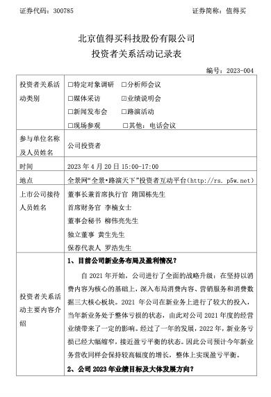 北京值得买科技股份有限公司(以下简称“值得买”或“公司”)4月20日发布公告称,公司于4月20日举行了2022年度业绩说明会。在说明会上,值得买透露,今年,公司将AIGC列入了年度重点战略项目,公司将投入极大的精力和时间推进AIGC与公司业务的结合。
