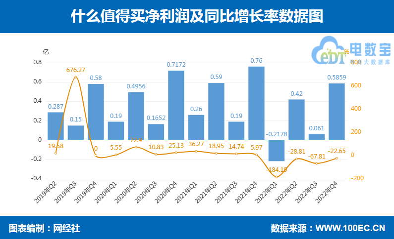 2022年,什么值得买净利为0.85亿元,同比减少52.71%;基本每股收益为0.64元/股,同比减少52.59%;经营活动产生的现金流量净额为6833.7亿元,同比下滑27.92%。
