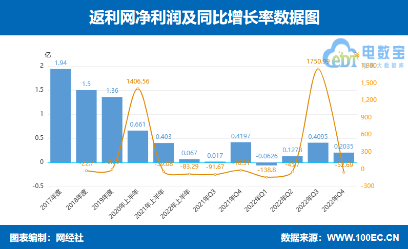 对于2022年的营收表现,返利网表示,互联网实物消费的商品物流配送等环节受到一定不利影响,电商行业市场环境变化,进而波及互联网导购业务环节,同时网络消费需求偏好变化,广告投放需求变弱,公司传统在线导购业务及广告推广业务有较大幅度下滑。