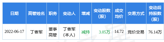 根据6月20日市场公开信息、上市公司公告及交易所披露数据整理,国林科技(300786)最新董监高及相关人员股份变动情况:2022年6月17日公司董事,高管丁香军共减持公司股份3.05万股,占公司总股本为0.0166%。变动期间公司股价上涨1.31%,6月17日当日收盘报14.7元。