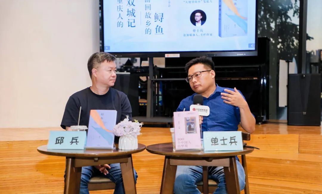 同日,在重庆精典书店温情呈现阅读沙龙,邱兵与资深媒体人单士兵围绕《鲟鱼》进行深度分享,由中信出版集团、精典书店、重庆日报与“天使望故乡”联合主办。