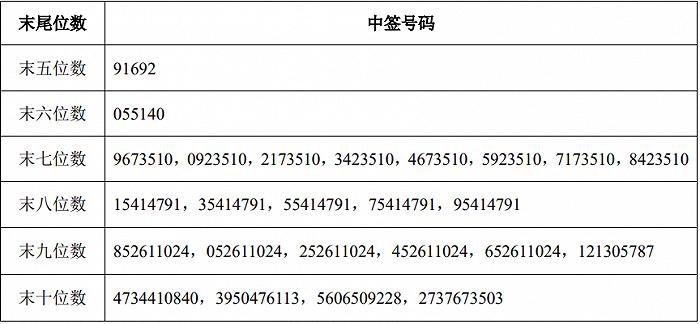 宇瞳光学8月14日公告,凡参与宇瞳转债网上申购的投资者持有的申购配号尾数与下述号码相同的,则为中签号码。中签号码共有114295个,每个中签号码能且仅能认购10张宇瞳转债。