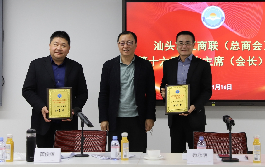 会议还进行了轮值主席、轮值会长交接仪式,蔡永明为轮值主席、轮值会长颁发牌匾。