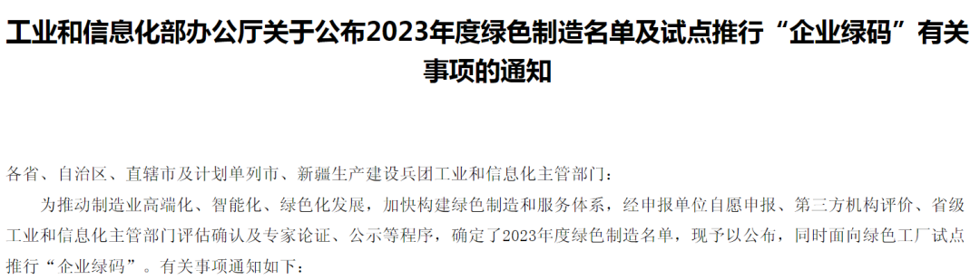 (摘自国家工信部官网2023年度绿色工厂名单)