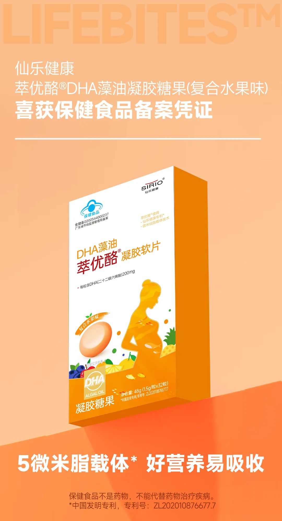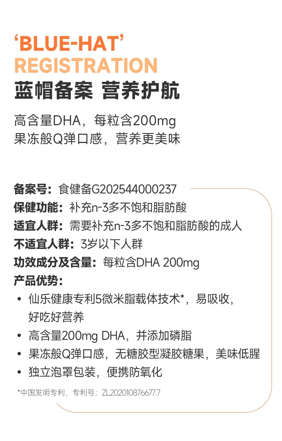 仙乐健康萃优酪?DHA藻油凝胶糖果喜提“蓝帽”备案凭证