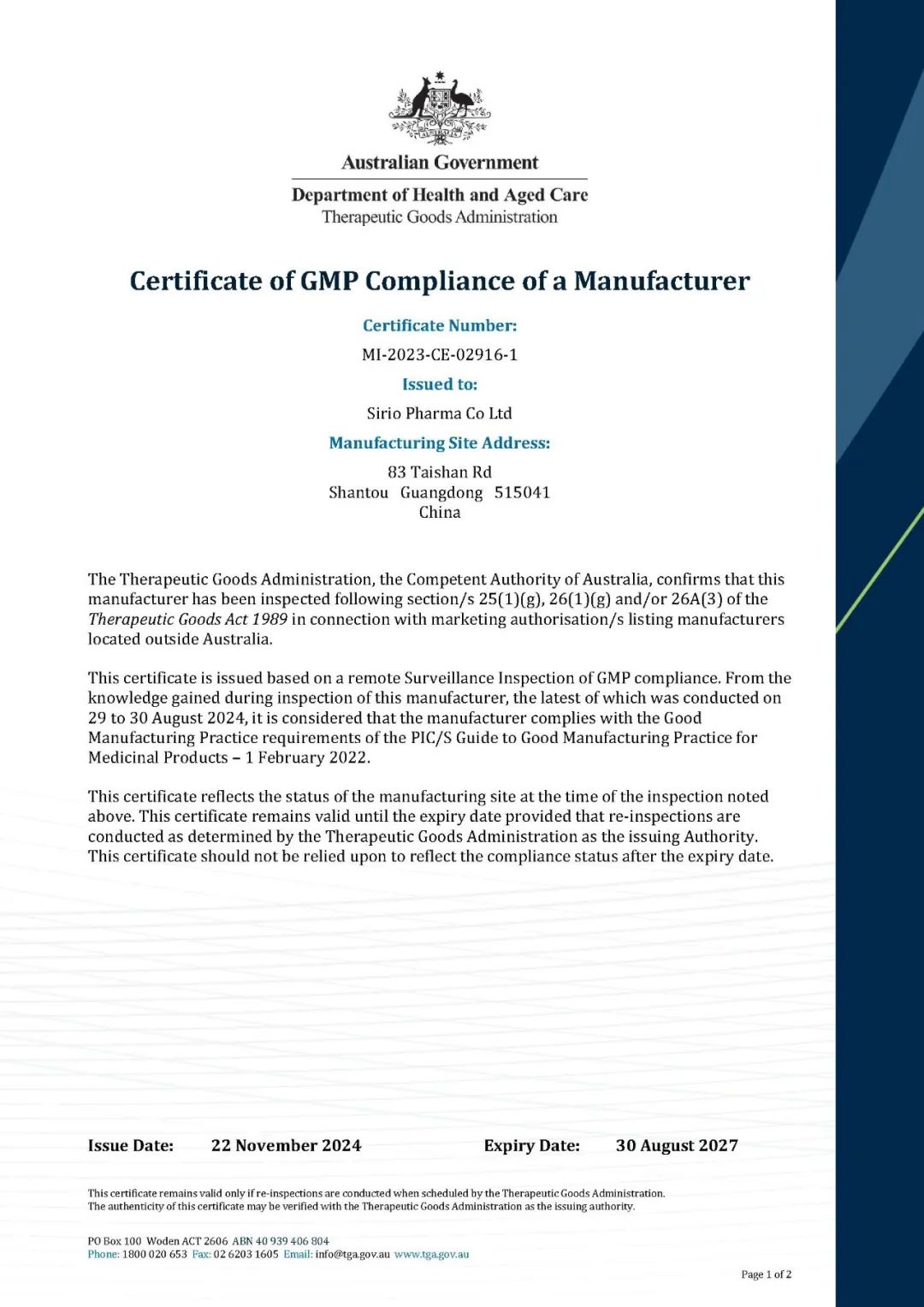 TGA GMP认证是由澳大利亚医疗用品管理局颁布,被誉为行业内“金字塔顶端”的生产标准认证。作为全球唯一将膳食补充剂纳入药品管理体系的国家,澳大利亚对生产企业的审核标准堪称严苛,要求从设施管理、物料管理、生产管理到质量检验等方面均需满足药品级规范,被公认为是世界上药品管理严格市场准入难度较高的国家之一。