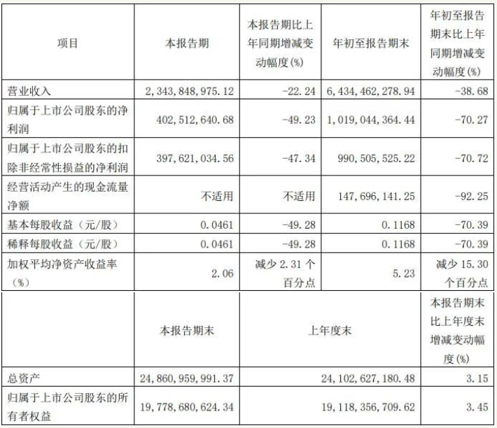 2023年前三季度,和邦生物实现营业收入64.34亿元,同比下降38.68%;实现归属于上市公司股东的净利润10.19亿元,同比下降70.27%;实现归属于上市公司股东的扣除非经常性损益的净利润9.91亿元,同比下降70.72%。