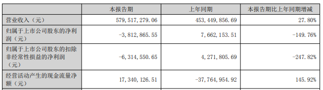 锦鸡股份(300798.SZ)2025年半年度报告显示,公司上半年实现营业收入5.80亿元,同比增长27.80%;归属于上市公司股东的净利润-381.29万元,上年同期为766.22万元;归属于上市公司股东的扣除非经常性损益的净利润-631.46万元,上年同期为427.18万元;经营活动产生的现金流量净额1734.01万元,上年同期为-3776.50万元。