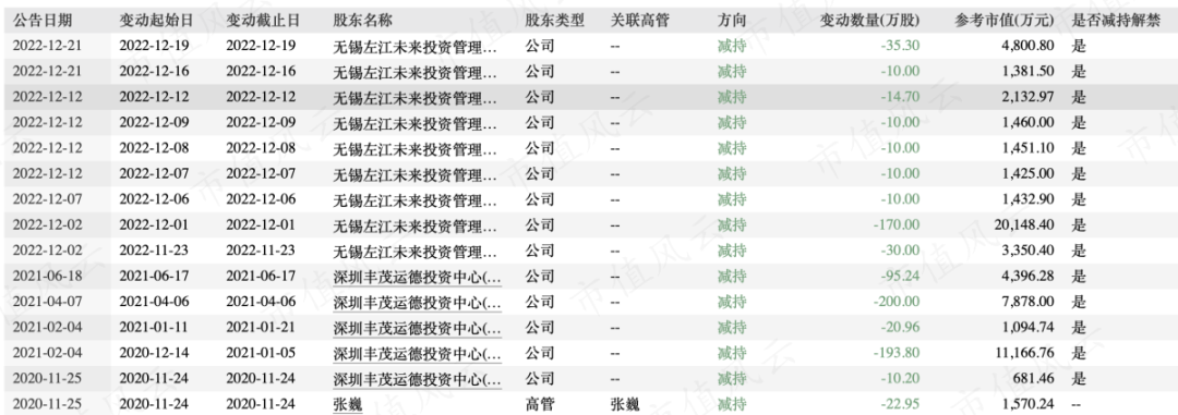 去年左江科技自2022年5月以来就涨了2.78倍,11月和12月份涨了40%,有些股东也趁机减持,合计减持6.43亿。