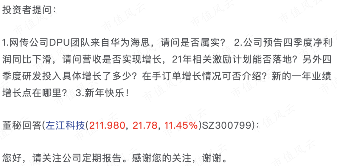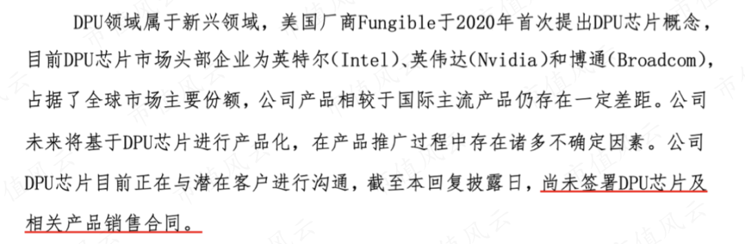 虽然左江科技已经成功生产出来了DPU芯片,但目前还没有收入。