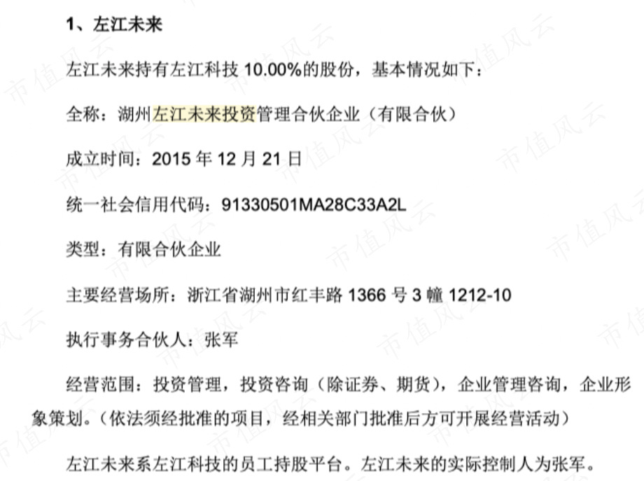 其中,左江未来投资管理合伙企业是左江科技的员工持股平台。