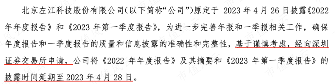 原本计划2023年4月26日披露2022年年报和2023年1季报的,也延后至2023年4月28日。