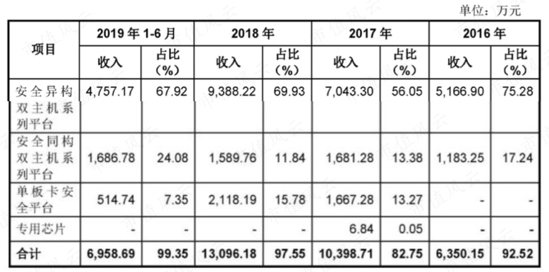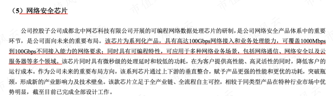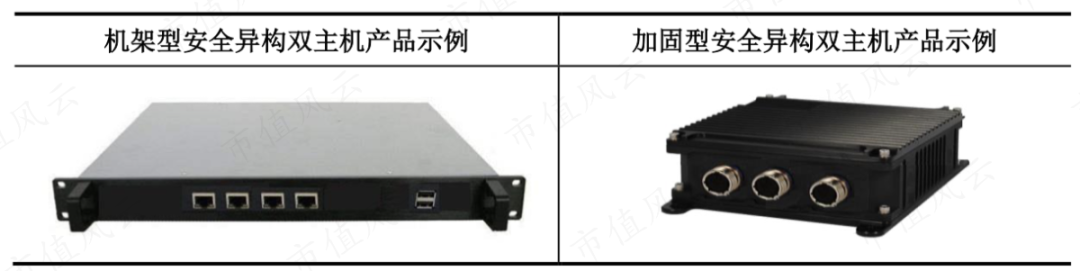 产品为覆盖网络安全全领域的智能硬件主机,搭配以自研的安全系列软件和网络安全芯片:
