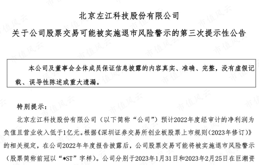 左江科技分别于2023年1月31日、2023年2月25日、2023年3月25日多次提示了此风险。