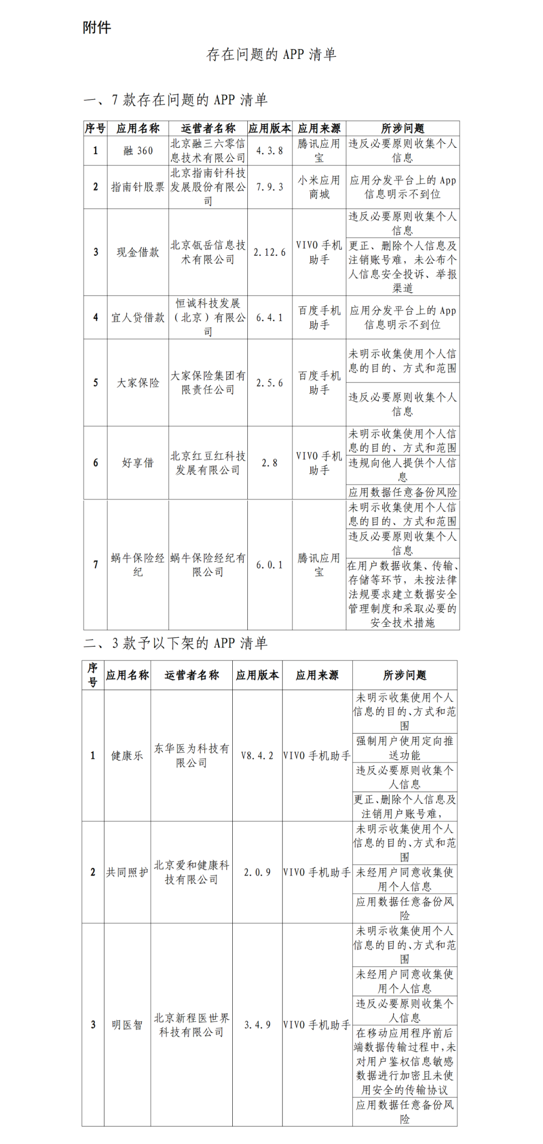 IT之家从北京市通信管理局获悉,近期,该局通过抽测发现本市部分 App 存在“违反必要原则收集个人信息”“未明示收集使用个人信息的目的、方式和范围”等侵害用户权益问题。截至目前,尚有 7 款 App 未整改或整改不到位,现予以公开通报: