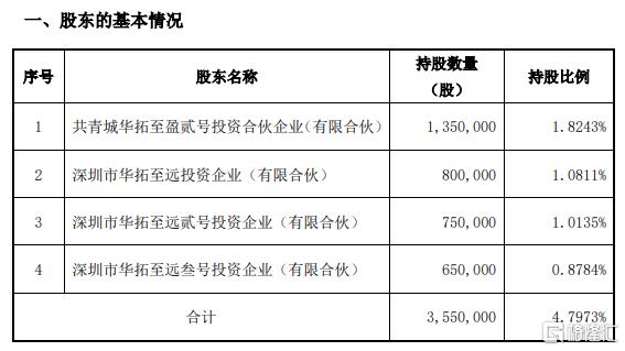 另一方面,共青城华拓至盈贰号投资合伙企业(有限合伙)等4家“华拓系”股东计划合计减持公司股份不超过222万股,即不超过公司总股本的3%。