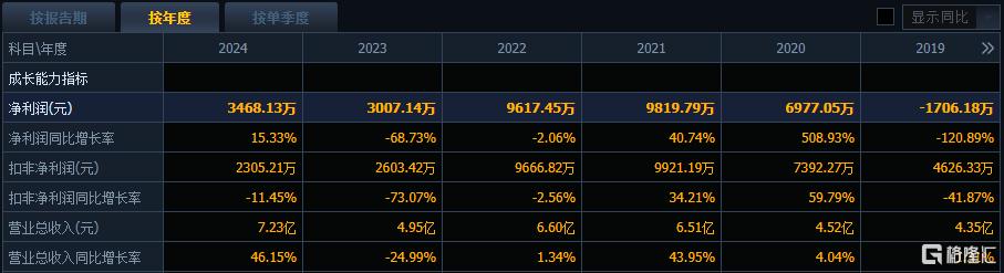 然而,上市后业绩表现疲软,2023年营收下滑25%,净利润和扣非净利润分别下降68%和73%。2024年营收有所恢复同比大增46.15%,但扣非净利润继续下滑11.45%。