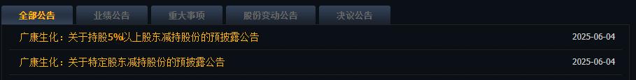 6月3日晚,广康生化连发两则公告,一条是持股5%以上股东减持,一条是特定股东减持。