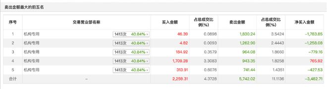 6月3日,机构资金开始出现明显撤回迹象。盘后龙虎榜数据显示,卖出前五营业部均为机构专用,合计卖出5742万元。