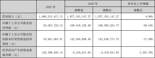 斯迪克(300806.SZ)昨日晚间发布2023年年度报告。去年,公司营业收入19.69亿元,同比增长4.86%;归属于上市公司股东的净利润5606.77万元,同比减少66.64%;归属于上市公司股东的扣除非经常性损益的净利润3996.17万元,同比减少71.98%;经营活动产生的现金流量净额1.42亿元,上年同期调整后为-43.19万元。