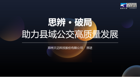 在此次会议上,天迈科技市场部经理邢进做了“思辨·破局,助力县域公交高质量发展”的主题分享,通过提高精细管理能力、打造便捷高效服务网络、创新经营模式、建设经济智能信息化平台等方面来帮助县域公交企业改善当前营收下降、空置率高、资源利用效率低、管理不规范、体系不够完善的现状。