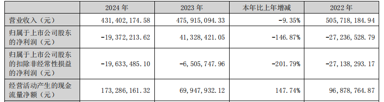 2022年、2023年、2024年,公司实现归属于上市公司股东的扣非净利润分别为-2713.83万元、-650.57万元、-1963.35万元。