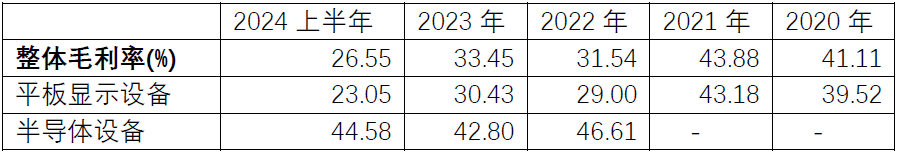 且从盈利能力来看,当前公司半导体设备毛利率水平保持在40%以上,相较于面板设备明显更具优势。