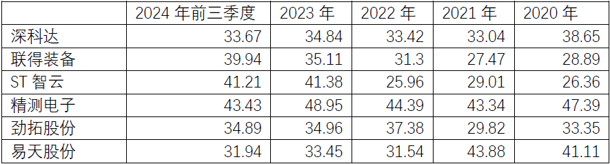 自2020年开始,易天股份的整体毛利率水平持续下行,已经从2020年40%以上的水平下跌至2024年前三季度的31.94%,而这其中下跌最为明显的就是面板设备。