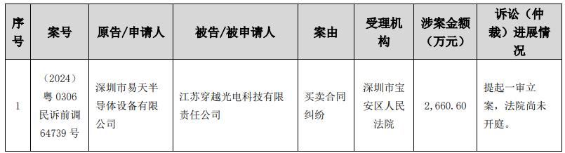 7月16日,易天股份(300812)发布公告,公司目前正处于一项合同诉讼的进展阶段,案件为一审阶段,且公司为原告。