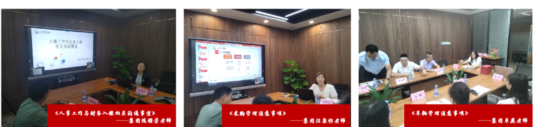 业务部门的领导及同事分别从办公系统、劳动安全法务风控、企业文化、玉禾田品牌、干部人才盘点、集团培训体系、财务入账相关事宜、采购管理车辆管理注意事项等方面进行了分享。