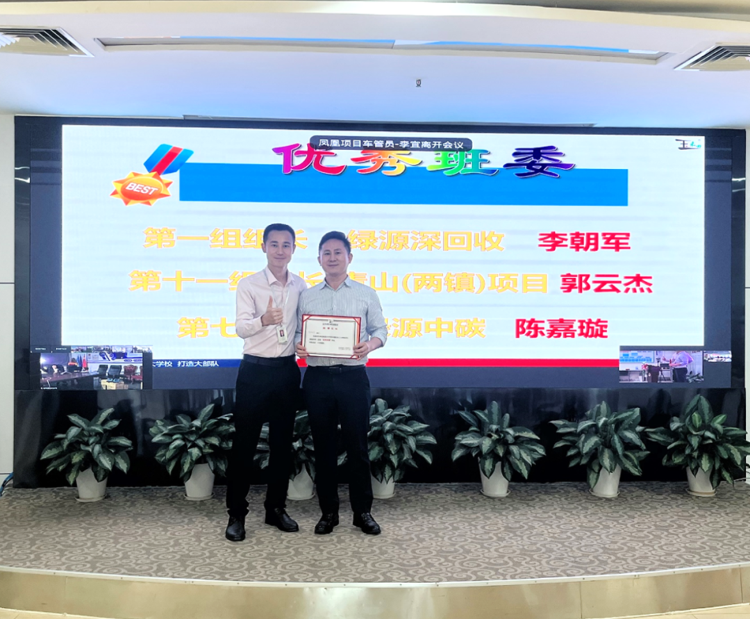 优秀班委:第一组组长绿源深回收李朝军、第十一组组长内蒙古包头青山(两镇)项目郭云杰(线上)、第七组组长绿源中碳集团陈嘉璇(线上)