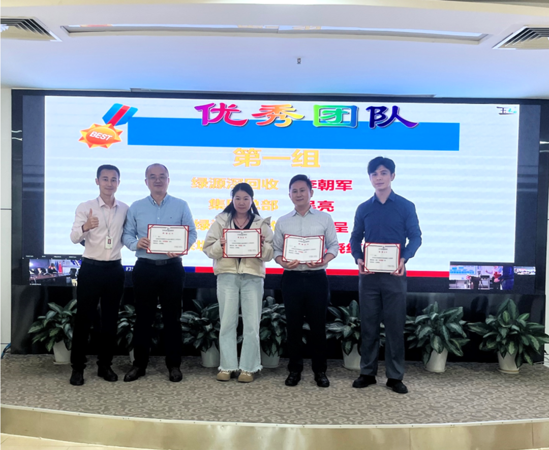 第一组(现场):绿源深回收李朝军、集团创新发展事业部吴亮、绿源深回收刘冠呈、广东深圳光明茅州河项目胡晓红