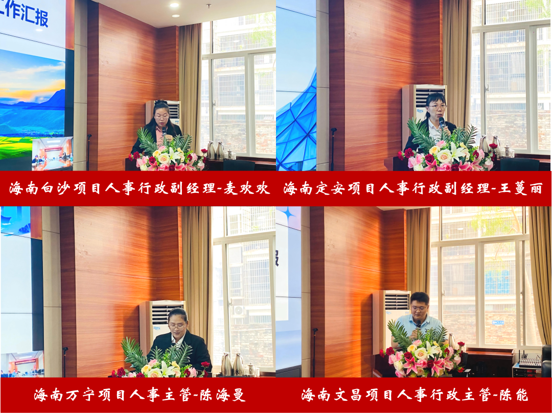 海南区域8个项目的人事负责人依次开展述职汇报,围绕“降本增效、合规管理、数字化转型、人才建设”四大维度,全方位呈现2025年工作成效与面临的挑战: