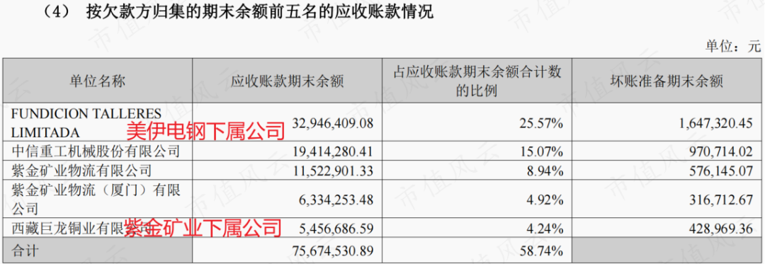 近几年公司并未对前五大客户进行披露,从应收账款情况来看,主要为美伊电钢、紫金矿业和中信重工。