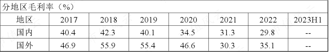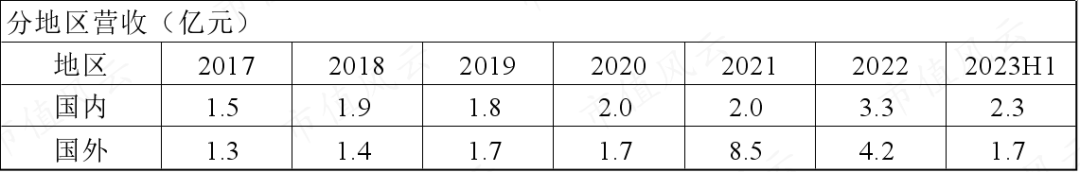 分地区来看,2017年至2021年外销收入占比均接近50%。2023年上半年,国内营收为2.3亿元,海外营收为1.7亿元。