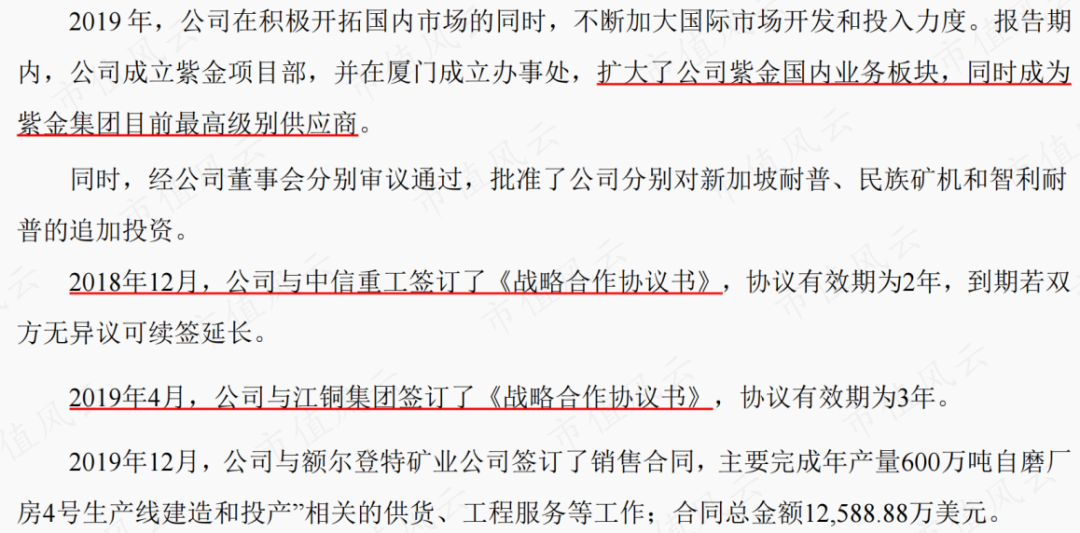 公司自2006年起即与中信重工开展合作,与紫金矿业的合作也较为深入。