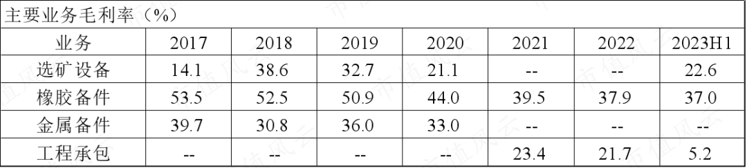 选矿设备毛利率波动较大,2023年上半年为22.6%。前面提到的额尔登特矿业EPC项目毛利率基本在20%左右。