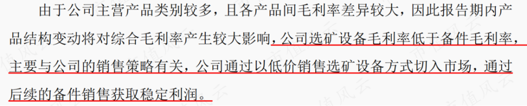 比如,销售给紫金矿业选矿设备的毛利率低于总体水平,除了设备规格差异外,还在于公司采取了低价策略。