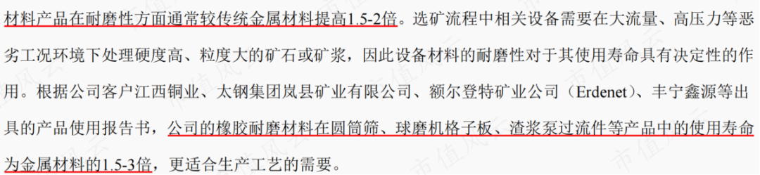 橡胶备件在性能、寿命等方面优于传统金属备件,对后者一定的替代效应,目前选矿环节橡胶备件替代率为10%左右。